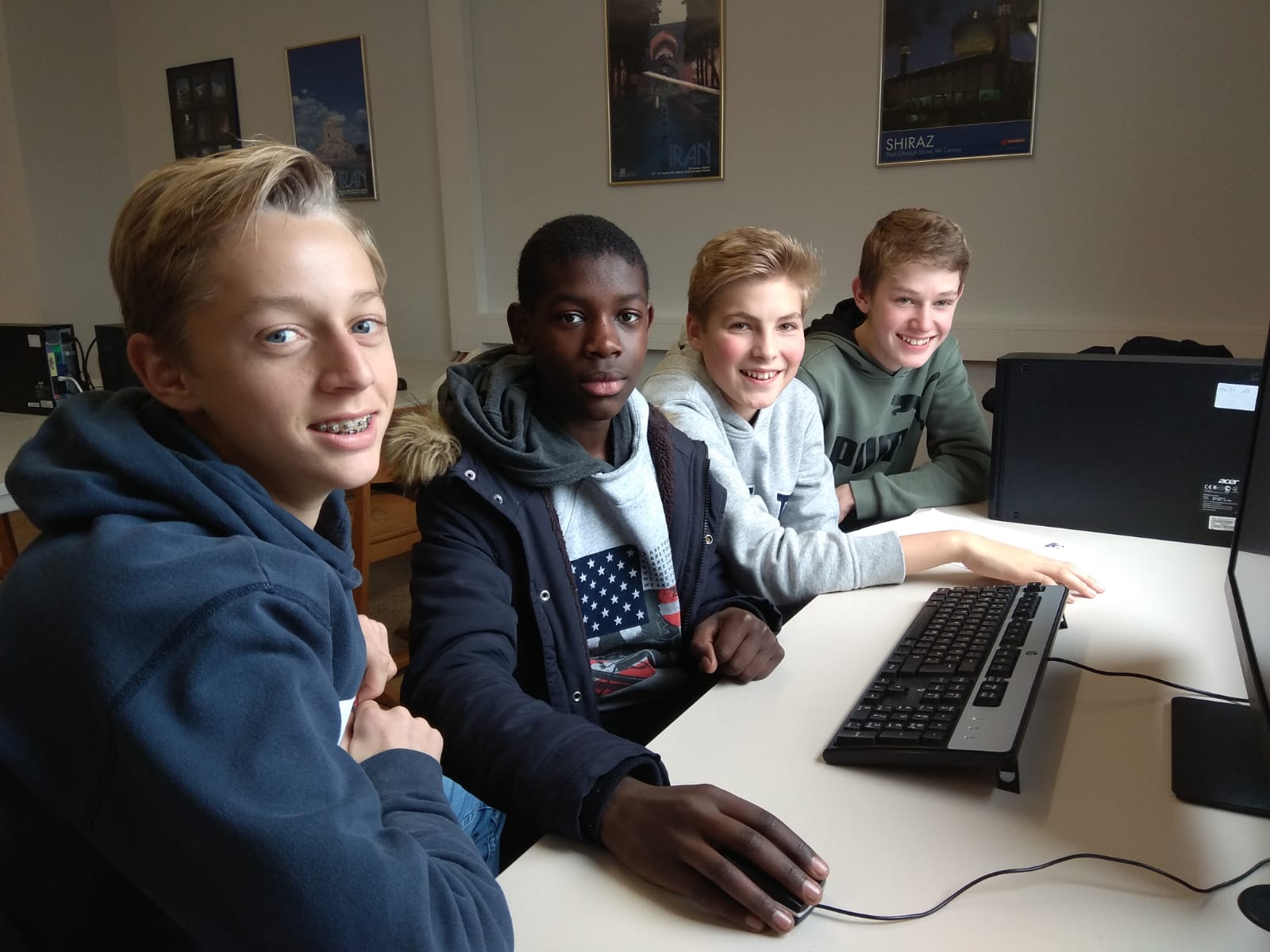 Am nächsten Tag stand Unterricht mit den Austauschpartnern sowie eine kurze Schulführung durch die Marienschule auf dem Programm. Nach einer kurzen Begrüßung der Gäste durch Herrn Kunert begann dann die deutsch-französische Projektarbeit zu verschiedenen, zur Auswahl stehenden Themen. Am Nachmittag lernten die Franzosen die Bielefelder Innenstadt mit ihren „Sehenswürdigkeiten“ kennen. So fuhren wir mit der Straßenbahn zur Sparrenburg und starteten von dort eine Stadtrallye, die uns bis zum Leineweber-Denkmal in die Altstadt führte. Leider fing es dann ordentlich an zu regnen, so dass wir froh waren, möglichst schnell in die Bahn zu steigen, um dann beim Bowling am Boulevard den ersten Tag ausklingen zu lassen.