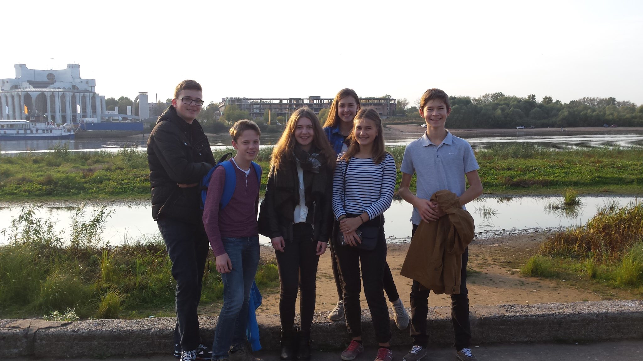 Am letzten Tag unseres Austausches, dem Dienstag, besuchten wir noch die Nowgoroder Universität und konnten erneut in der Schule unsere Meinungen zu den Projektarbeiten abgeben. Danach kam noch eine schöpferische Arbeit, bei der wir Brücken zwischen Russland und Deutschland bauen sollten, indem wir jeweils einen gleichen Begriff auf russischer und auf deutscher Sprache kunstvoll darstellten. Diese schöpferische Arbeit war dann auch Motiv des Fernsehberichtes, der genau am letzten Tag in der Schule vom russischen Fernsehen gedreht wurde und über den Austausch berichtete. Nach dem Mittagessen sangen wir zum zweiten und letzten Mal im Musikraum russische Volkslieder und am Nachmittag lernten wir ein weiteres Kinderzentrum, nämlich das der Schifffahrt, kennen.