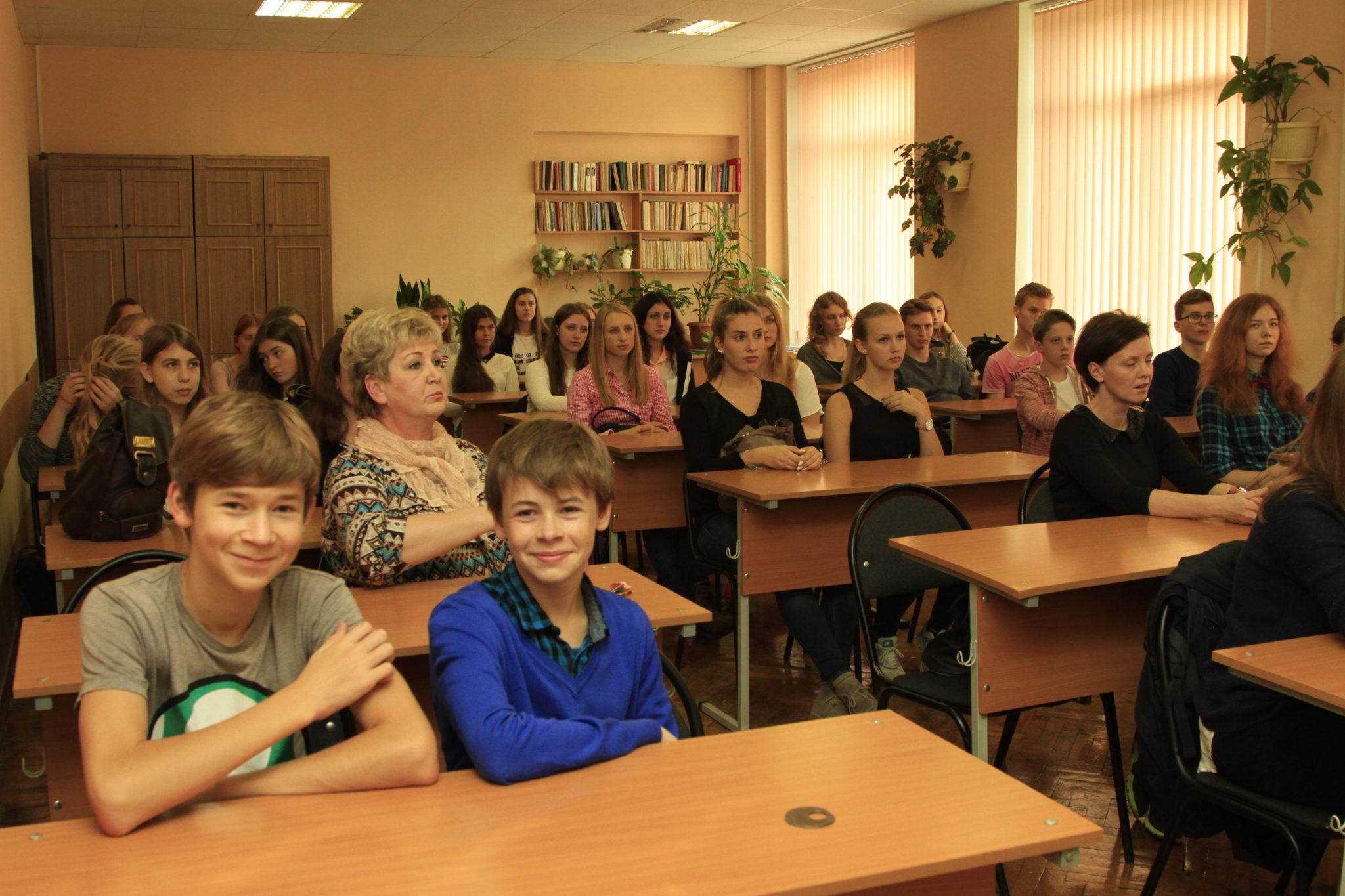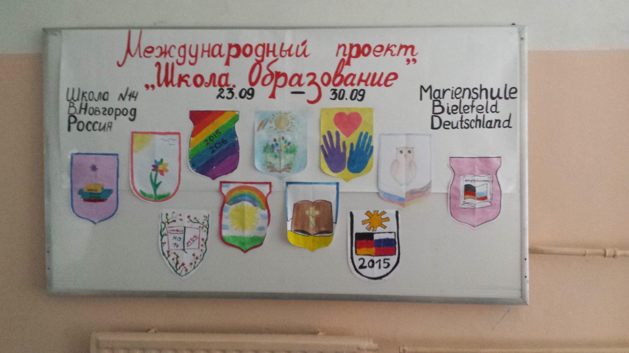 Am ersten Tag begann unsere gemeinsame Zeit morgens um halb zehn an der Schule. Nach einem leckeren und für uns mit warmem Essen eher untypischen Frühstück gingen wir also in die Schule. Dort starteten wir mit kleinen Kennlernspielen in den Tag und begannen auch gleich mit der Projektarbeit unter dem Motto „Schul- und Bildungswesen in Russland und Deutschland“. Wir hörten einen kurzen Vortrag über das russische Schulwesen, bevor wir dann in der Schule NR. 14 eine Rallye machten. Es folgte eine kurze Pause, in der wir alle gemeinsam mit zwei Musiklehrerinnen russische Lieder sangen und so schon am Anfang viel Spaß hatten. Nach dem Mittagessen stellten wir deutschen Schüler unsere Schule und unser Bildungswesen vor und alle zusammen machten wir uns Gedanken über ein russisch-deutsches Wappen, das beide Schulen und beide Städte verbinden sollte. Die sehr kreativen Ergebnisse wurden dann später in der Schule ausgehangen und alle konnten sich an unserer selbstgemachten Kunst erfreuen. Am Abend dieses ersten Tages in Russland gingen dann alle Schüler gemeinsam zum Bowling und als es gerade lustig wurde, versagte die Bowlingbahn aufgrund eines technischen Defekts. So mussten wir nach der Hälfte unserer geplanten Zeit das Spielen abbrechen, da nichts mehr vernünftig lief.