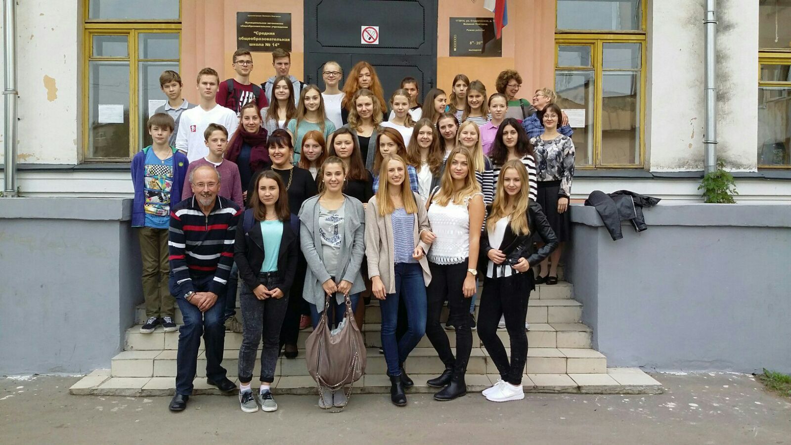 Nach weiteren drei Stunden Fahrt kamen wir dann todmüde bei unserer Partnerschule in Velikij Nowgorod an. Der Empfang war so gastfreundlich wie auch die Russen selbst: Unsere Gastschüler warteten mit Luftballons und einem riesigen Banner mit „Herzlich Willkommen“ auf uns. Dann kam der spannende Teil auf den schon viele von uns gewartet hatten, die Einteilung der Schüler. Nach dem ersten Aufeinandertreffen der Austauschpartner ging es dann zu Fuß oder im Auto zu den jeweiligen Wohnhäusern, wo wir dann den Abend in den Gastfamilien verbrachten. Dort unterhielten sich die meisten nach einem leckeren Abendessen und wir fragten uns mit unserer Gastfamilie gegenseitig übereinander aus. Dann kam für alle der bitternötige Schlaf bevor es am nächsten Tag in alter Frische weiterging.