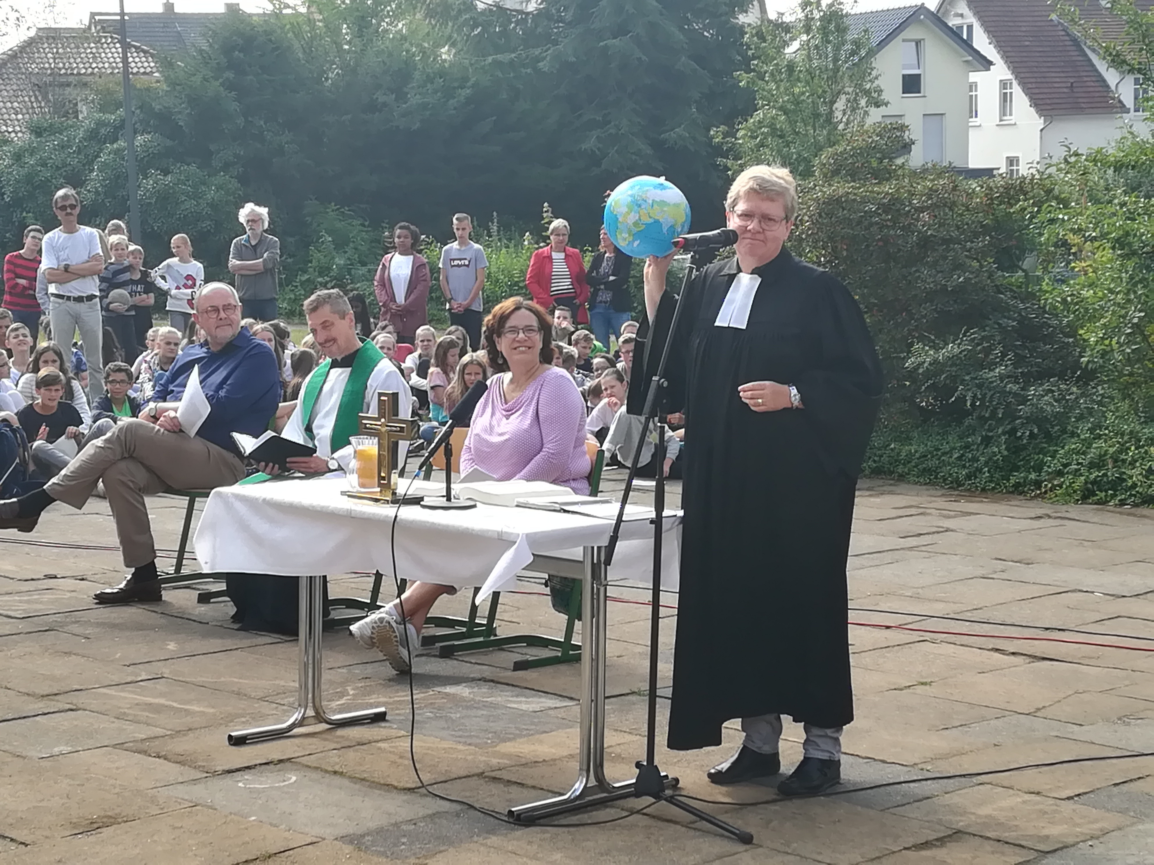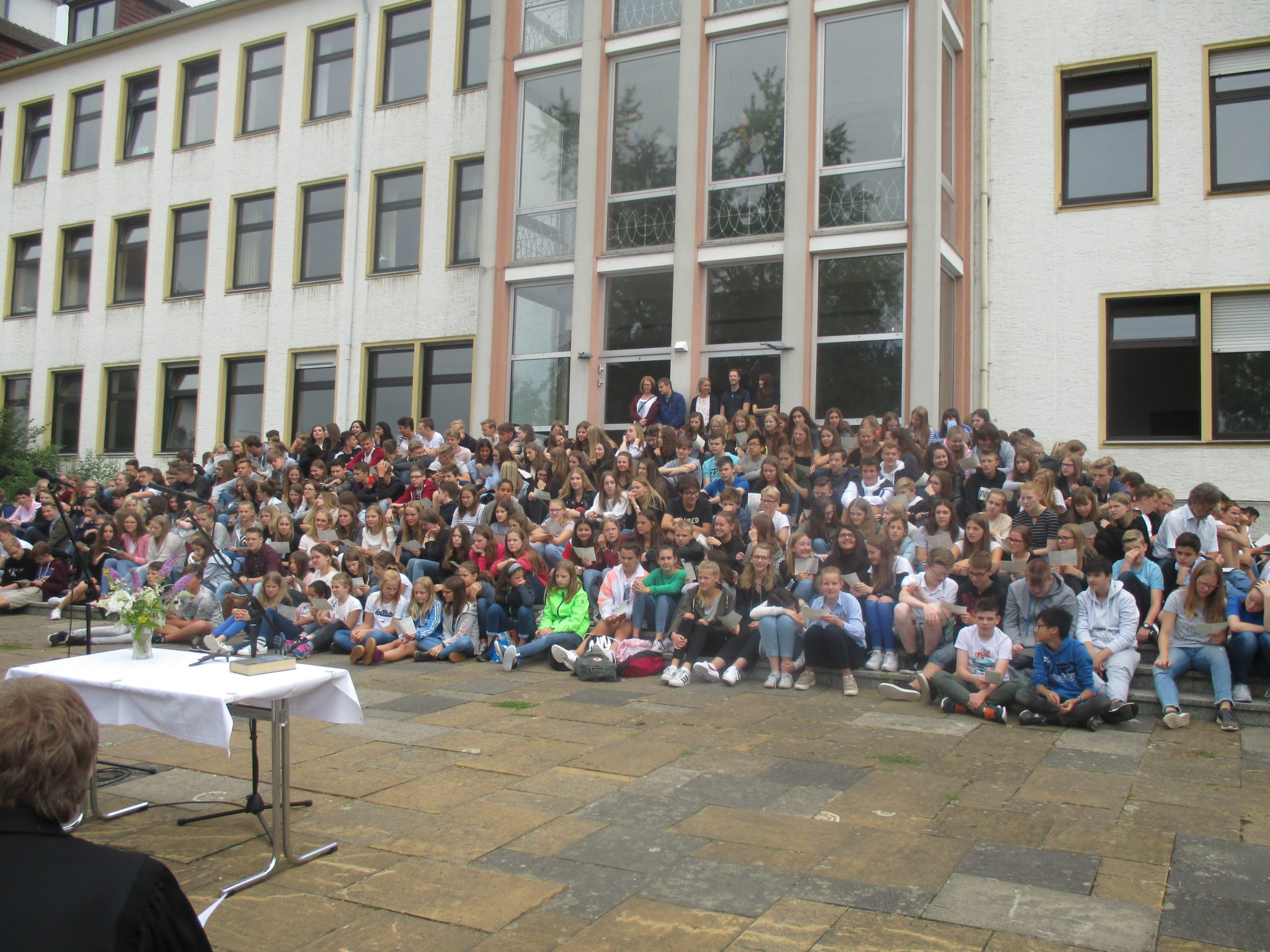 Mit ein wenig Verspätung wegen eines Wolkenbruchs konnte der alljährliche Gottesdienst zum Schuljahresabschluss doch noch auf dem Gelände rund um den Turm stattfinden. Im Gottesdienst, der von Frau Welle und Frau Pastorin Stille vorbereitet wurde, ging es maßgeblich um die Bedeutung von Völkerverständigung und die Möglichkeiten eines friedlichen Zusammenlebens. Um all den Nationen, die in [...]